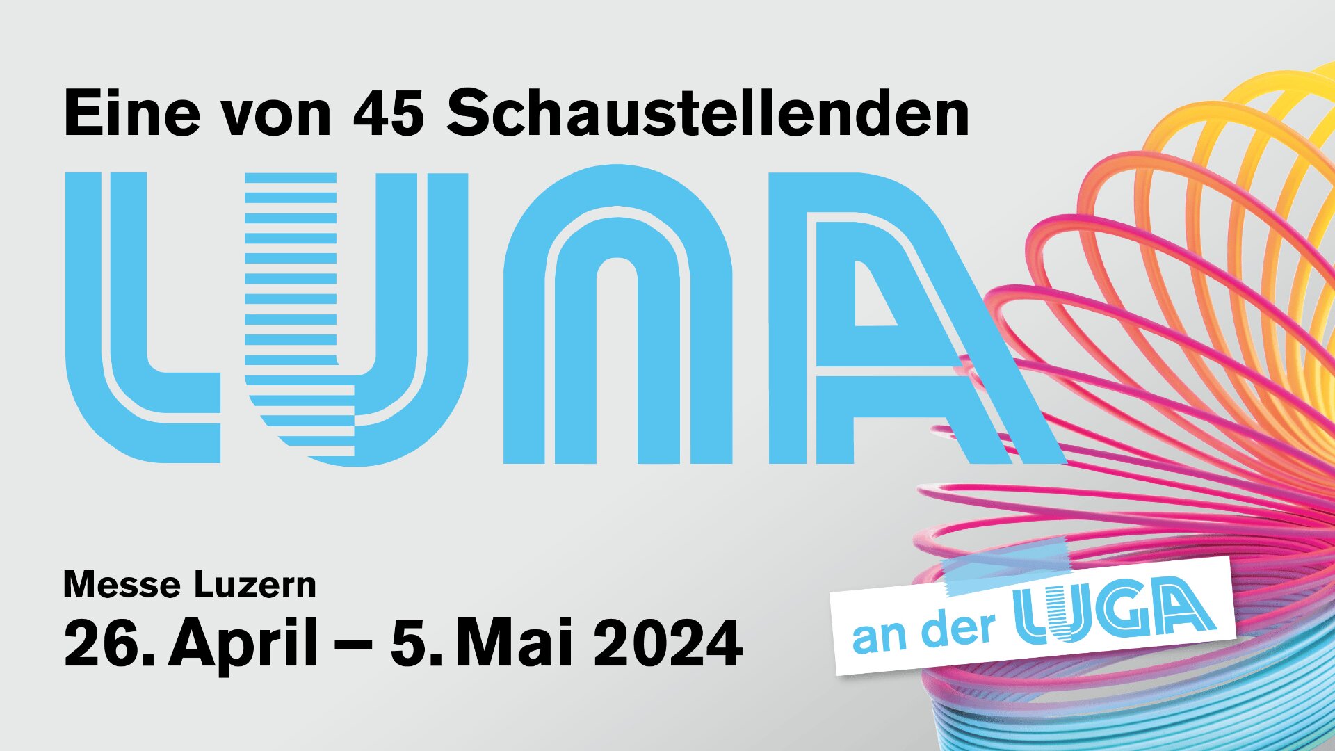 Am Freitag, 26. April 2024 startet die diesjährige Luga. Freue dich auf zehn informative, eindrückliche, erlebnisreiche und genussvolle Tage. Einmal mehr bietet die Luga eine unübertreffliche Vielfalt für Gross und Klein sowie für Jung und Alt.