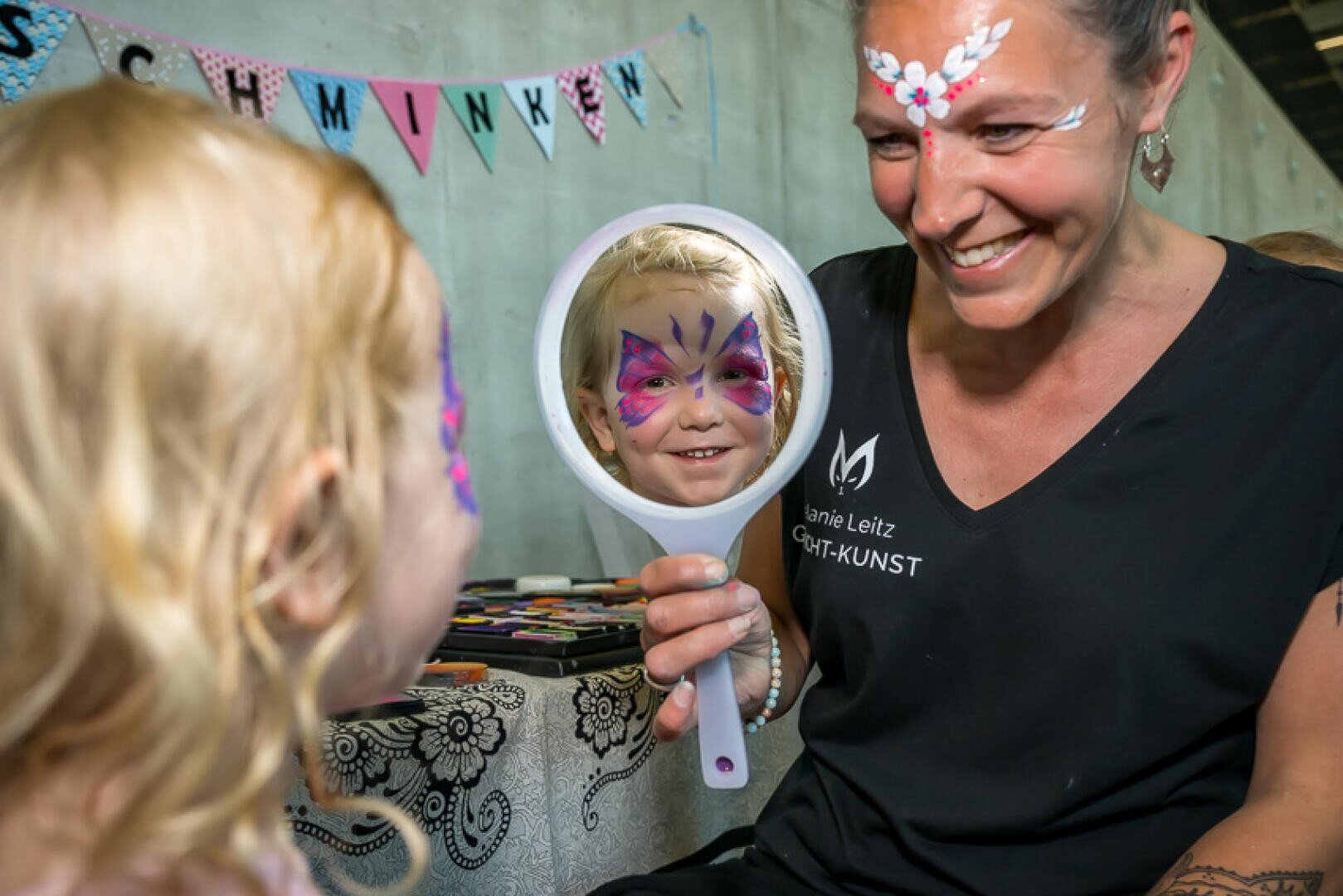 Das ganze Foyer wird zu einem einzigen Kinderparadies. Die Kinder können mit einer Kugelbahn spielen, sich kunterbunt schminken lassen, beim Pin basteln mit Jimmy und Etiketten bemalen mit Kiyo ihrer Kreativität freien Lauf lassen sowie beim grossen Malwettbewerb teilnehmen. – Foyer