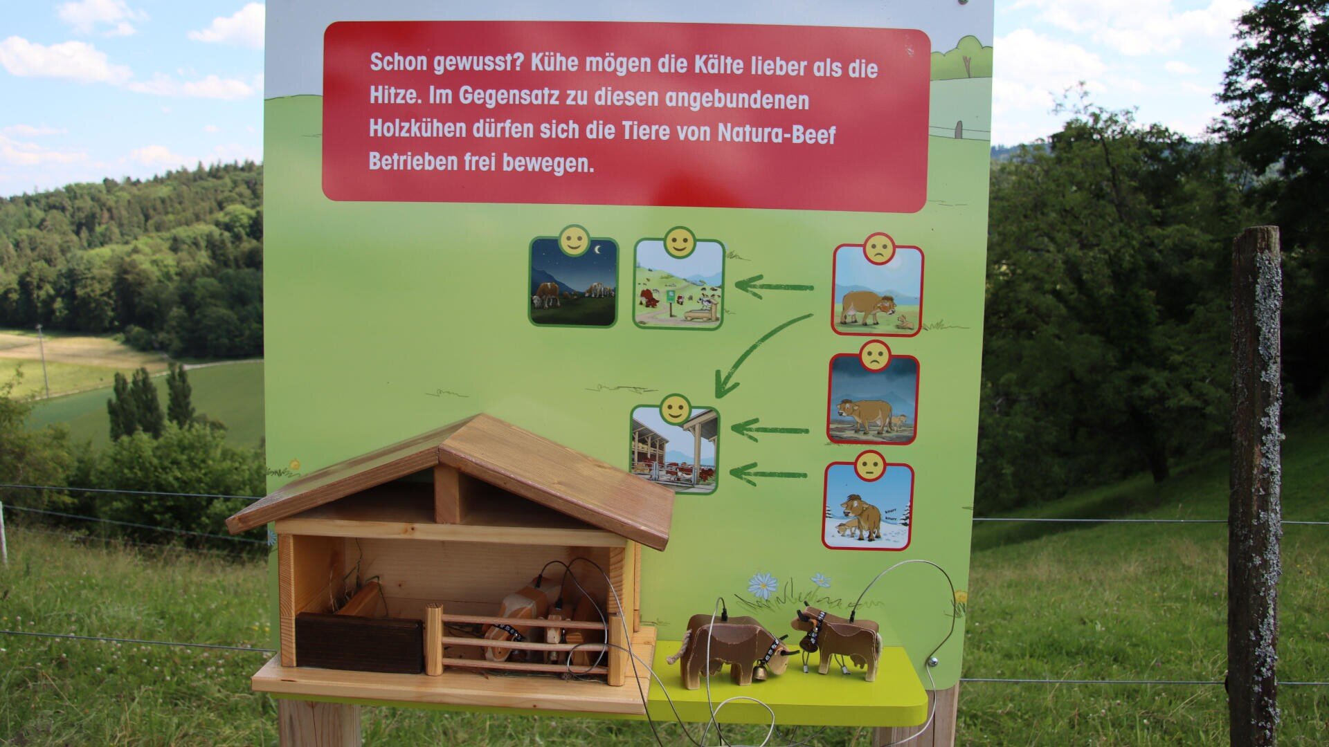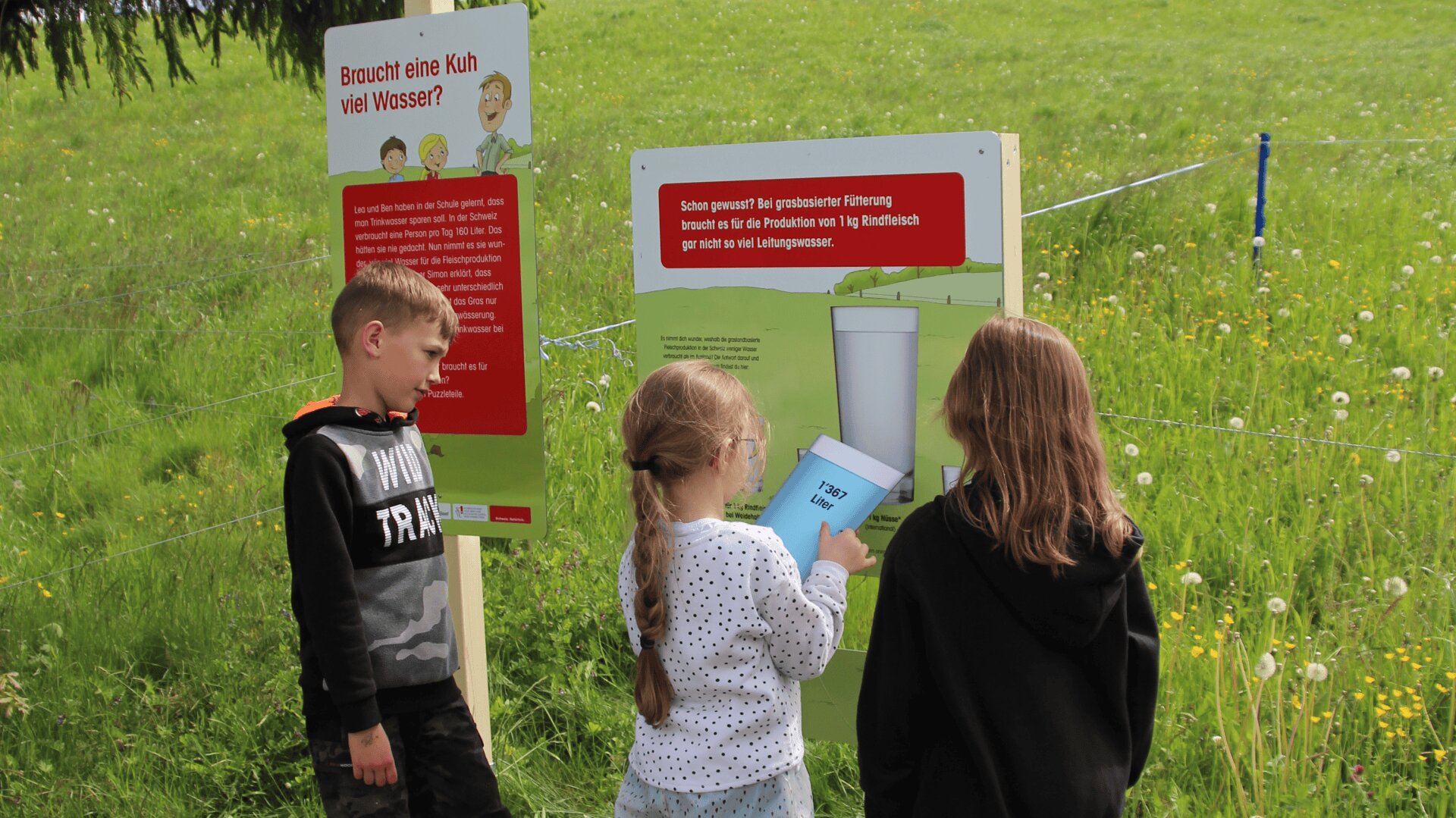 Erlebnisweg "Lea und Ben bei den Mutterkühen" in Luthern Bad (Napf/LU), Freienstein (Bülach/ZH) und Saignelégier (JU)