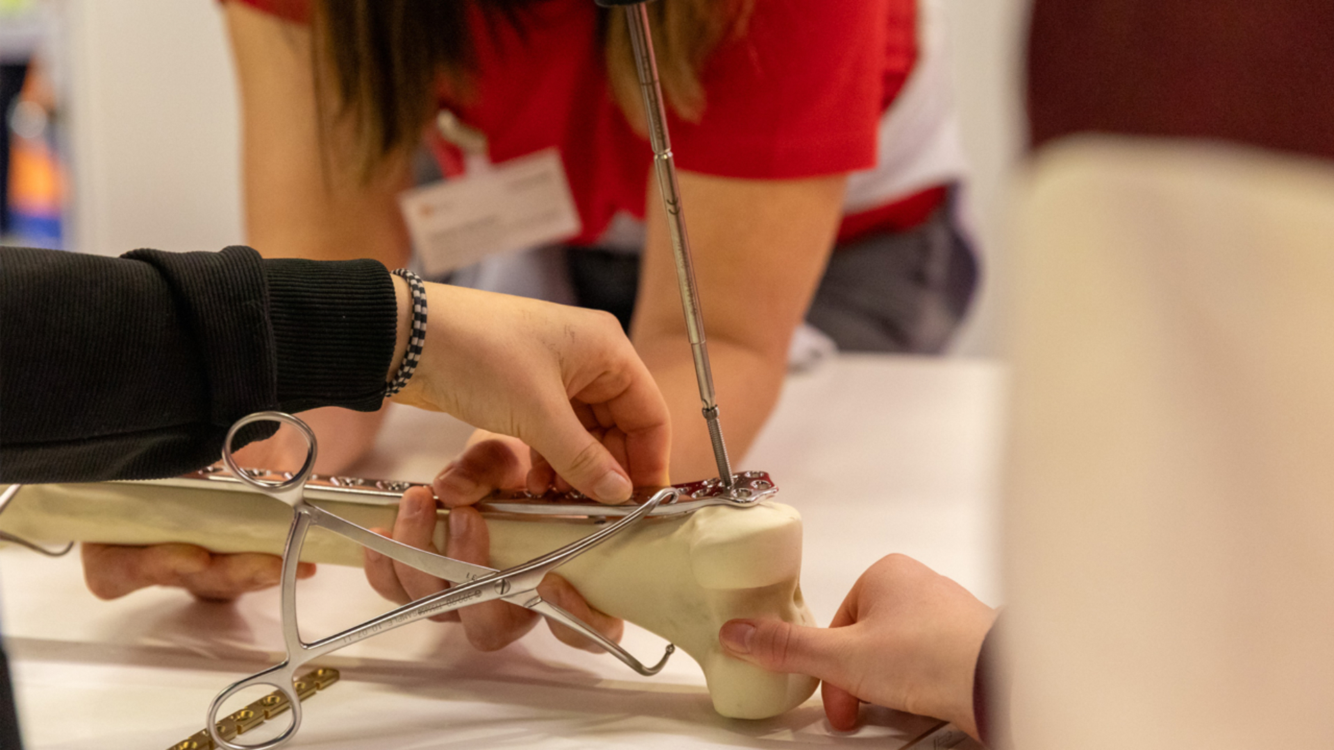 Bestimmt hast du, oder jemand, den du kennst, schon einmal einen Knochen gebrochen. Schlüpfe bei uns in die Rolle der Traumatologin, des Traumatologen und fixiere einen gebrochenen künstlichen Knochen mit Platten und Schrauben.