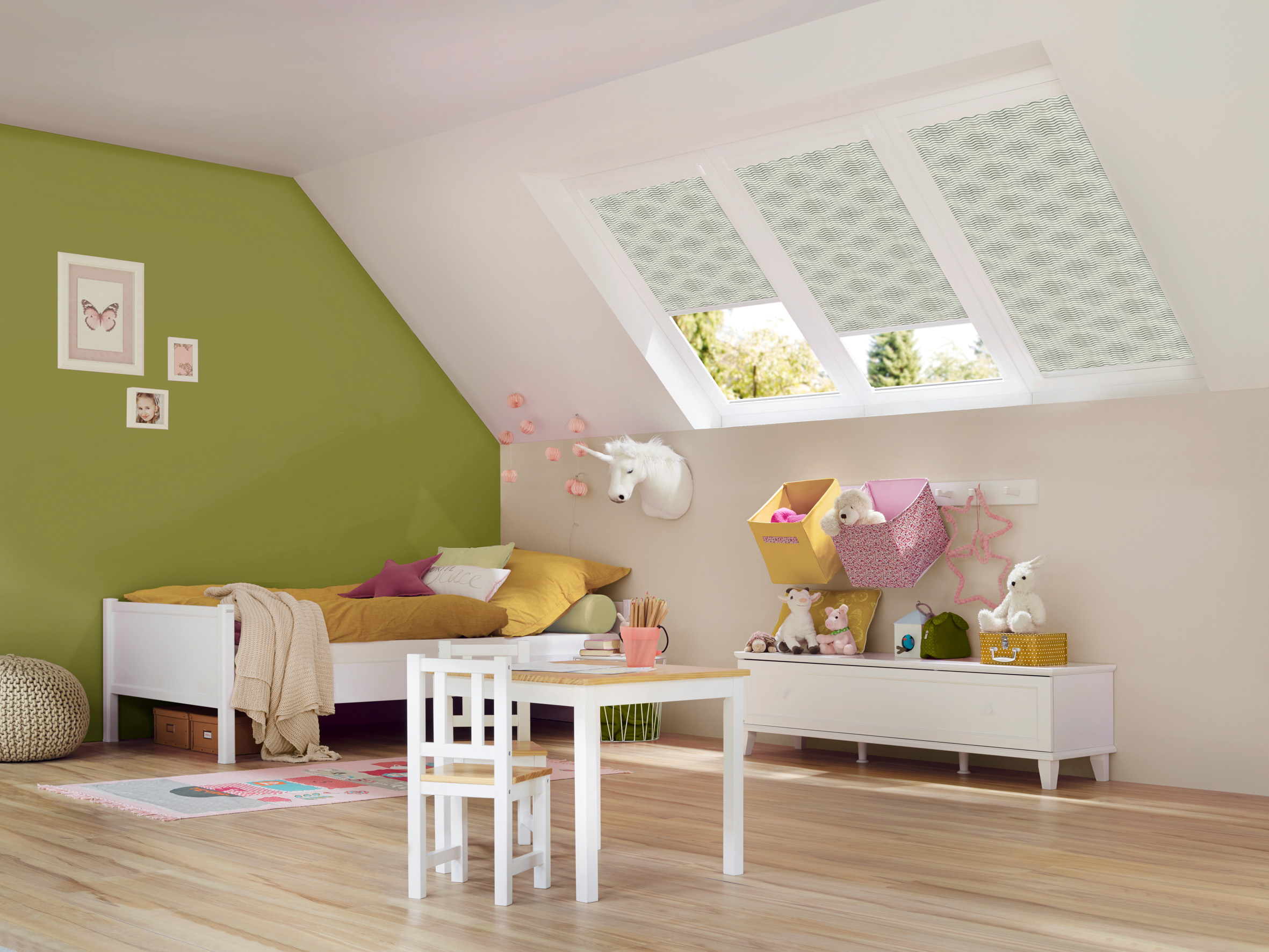 Richtig eingesetzte Rollos, Plissees, Jalousien oder Lamellenvorhänge helfen dabei: