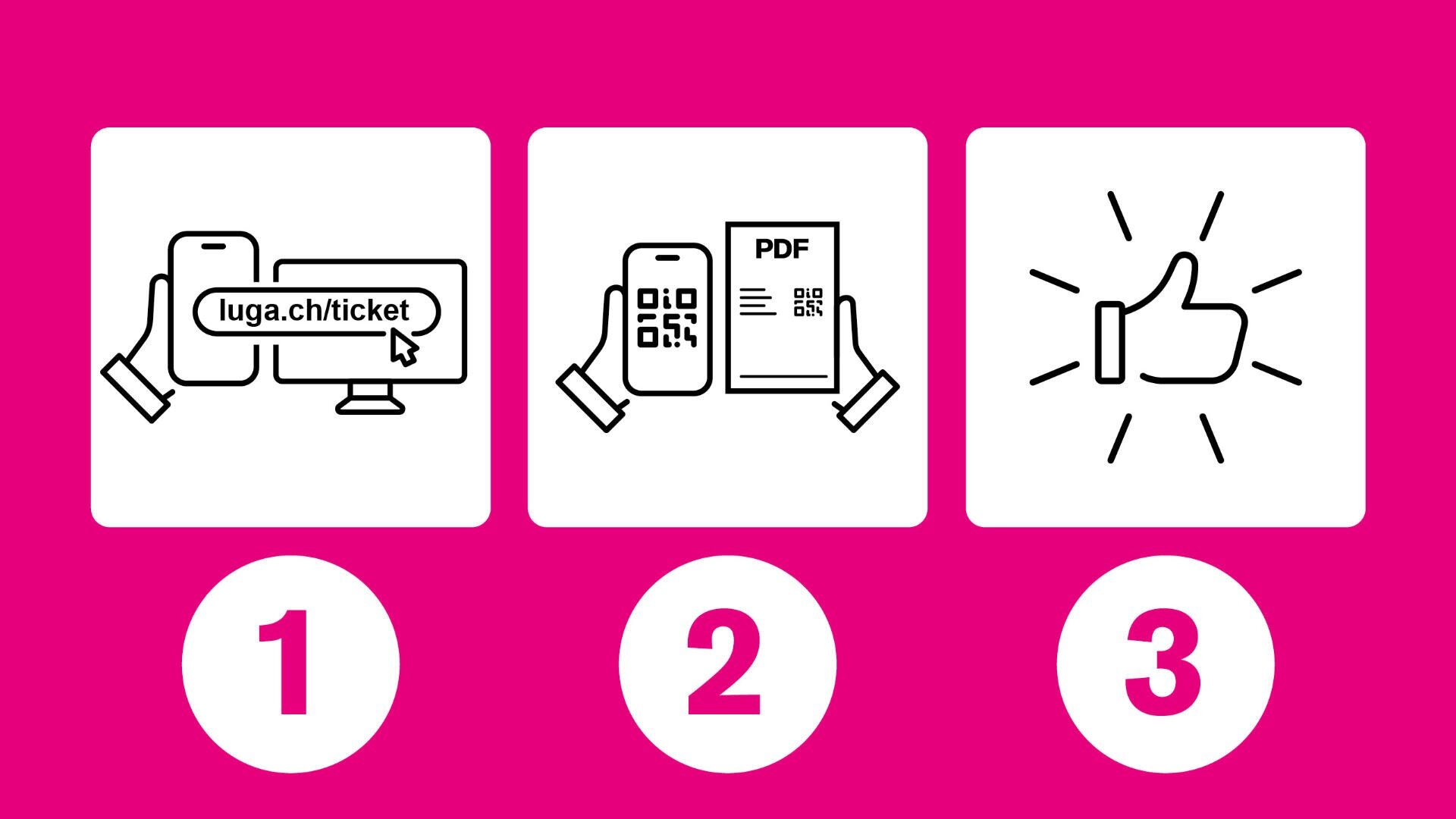 - Speichere dein Ticket in deiner Wallet-App oder als PDF – es ist zudem automatisch in deinem Luga-Profil unter «Meine Tickets» hinterlegt.