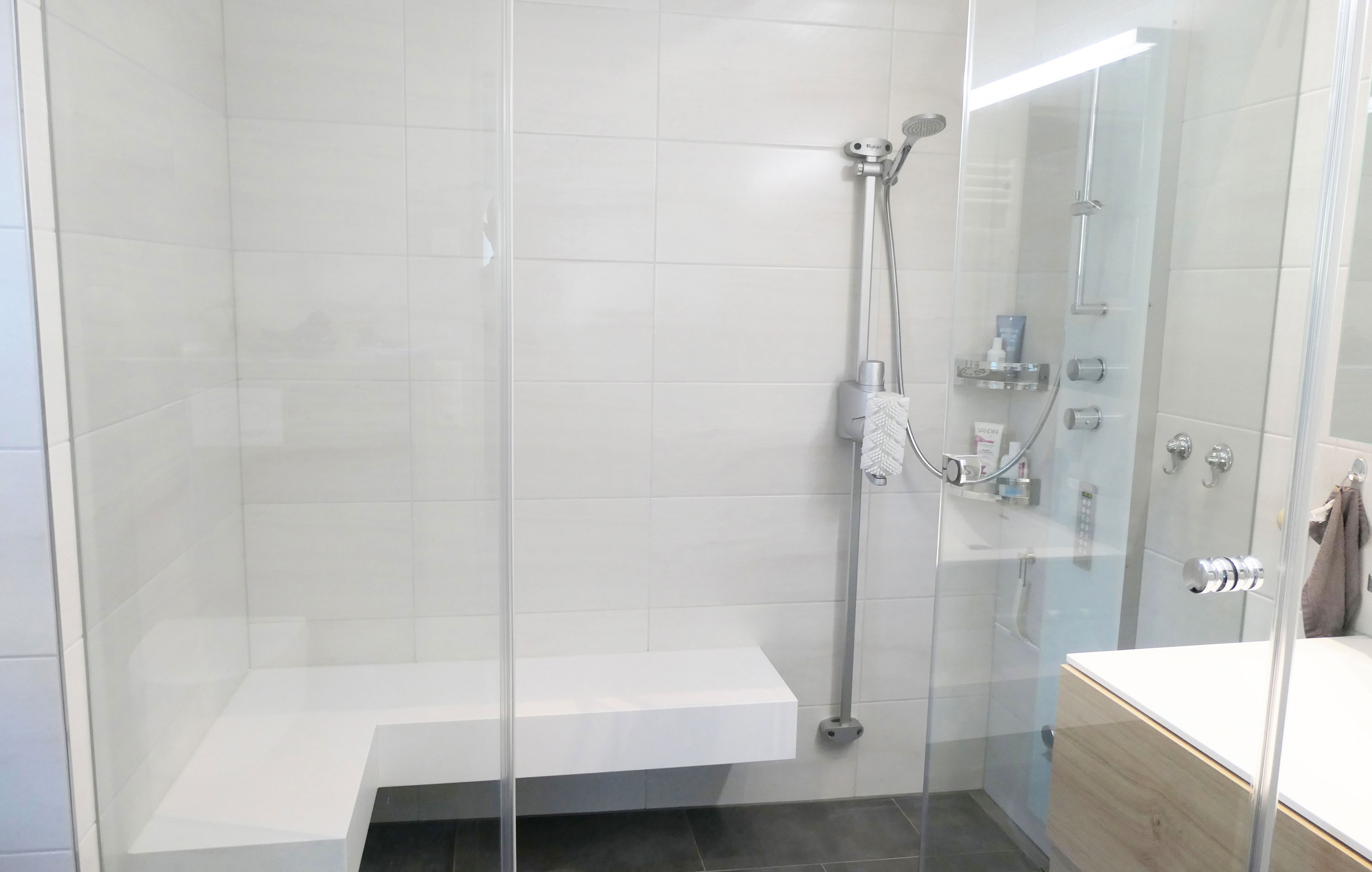 Nach der Anfangsidee hat sich Bruno Oberli aufgemacht und mit Hilfe von Freunden und Kollegen den ersten Prototypen entwickelt. Dieser wurde dann - mit der Erfahrung und dem Wissen von Spezialisten aus verschiedenen Fachgebieten - in mehreren Etappen und umfassenden Produkttests optimiert und verfeinert, bis zur Entstehung des heutigen Aglaja Duschsystems. Verwöhnprogramm unter der Dusche!