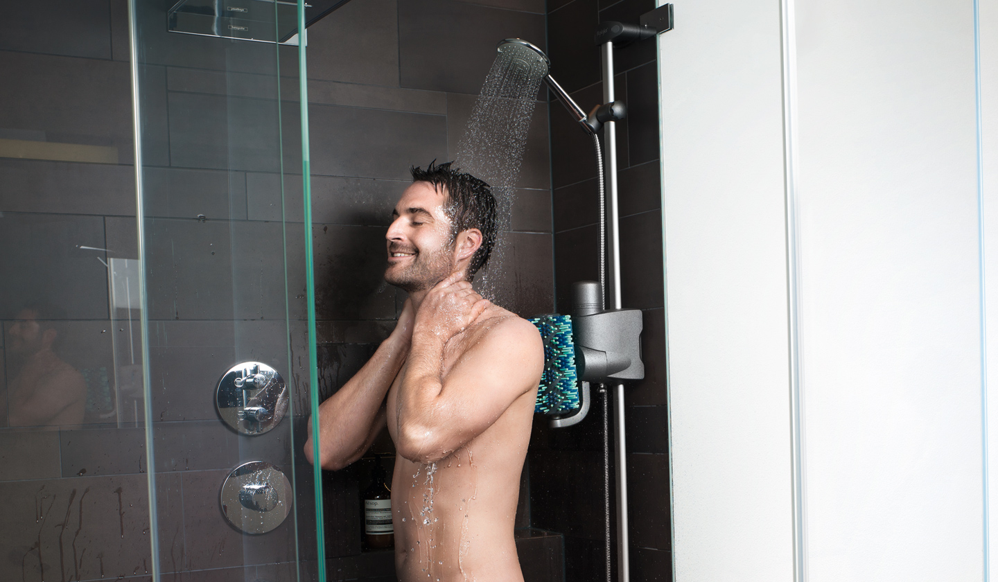 Nach einem langen Arbeitstag plagten Bruno Oberli immer wieder Rückenbeschwerden. "Unter der abendlichen Dusche hatte ich dann besonders das Bedürfnis, meinem Rücken etwas Gutes zu tun", denkt er zurück. Heute kann der Firmengründer täglich eine Rückenmassage geniessen, wie auch viele seiner Kunden.