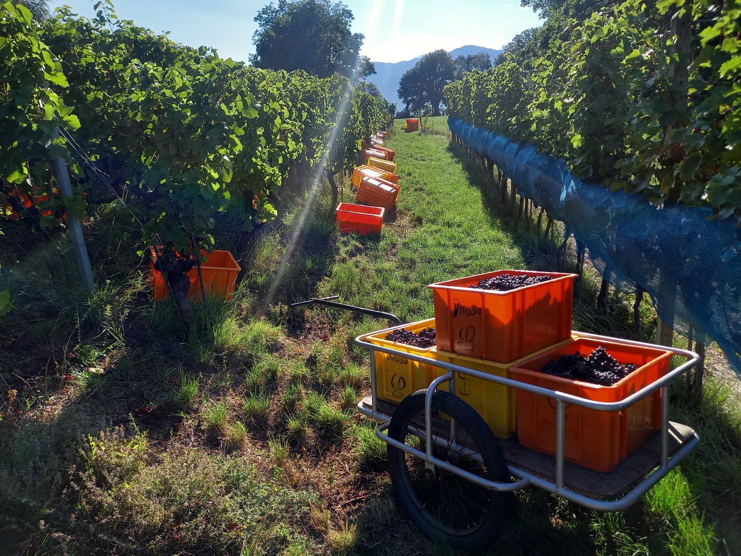 - sechs Flaschen Pinot «Josefine» 75cl, gekeltert aus dem Rebberg Heidnischbiel, nehmen Sie nach der Ernte mit nach Hause